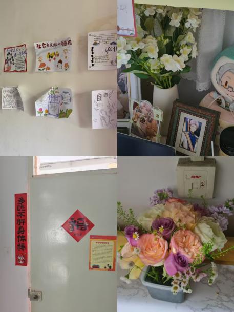 活动中,各参评宿舍成员分工协作,设计独特,一间间风格各异的“温馨小家”令人眼前一亮,有的以柔软抱枕、暖黄灯带勾勒出温馨港湾,让人推门便坠入家的怀抱,有的凭借简约线条与素色基调,打造出利落大气的极简空间,还有的巧用绿植、碎花等布艺点缀,营造出清风拂面般的清新氛围。