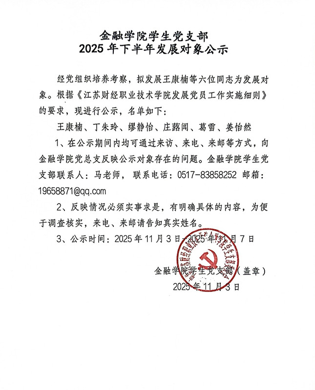 【金融学院】学生党支部 2025年下半年发展对象公示