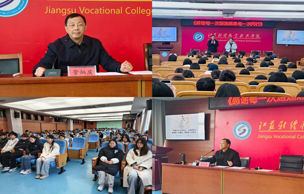为深入推动“健康生活 生命至上”主题育人工作,引导学生从认知、情感与实践层面理解感恩、践行感恩,12 月16 日下午,金融学院于图书馆220报告厅举办 “感恩每一次邂逅,感恩每一次同行”主题讲座。江苏财经职业技术学院关心下一代工作委员会委员管炳庆、金融学院辅导员张刘艳及金融学院部分学生代表参加了讲座。