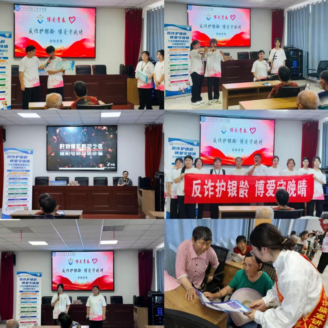 活动伊始,博爱青春志愿者手持防诈宣传单,与老年群体面对面交流,以通俗语言剖析“保健品诈骗”“冒充公检法诈骗”等常见骗局,叮嘱老人对陌生来电、信息及推销保持警惕,牢记“不听、不信、不转账”原则。随后,教工支部书记张幸老师结合专业知识与工作经验,以“案例视频+风险提示”的形式开展专题宣讲。她针对“虚假养老项目投资”“冒充亲友求助”等老年人易中招的诈骗手段,通过真实案件复盘,揭露诈骗分子话术逻辑与心理操控套路,进一步引导老年群体树牢“不轻信、不透露、不转账”的安全意识。宣讲结束后,博爱青春志愿者立足新时代文明实践要求,创新构建“反诈+文艺”沉浸式宣教模式,将反诈知识深度融入文艺创作与表演。方言反诈相声以诙谐幽默的本土语言拉近与老人的距离,在欢声笑语中传递反诈要点;沉浸式反诈情景剧生动还原“虚假银行客服诱导转账”“AI技术伪造身份诈骗”“假药推销陷阱诈骗”等典型场景,让老人直观了解诈骗全过程及破解方法;反诈二胡演奏、快板说唱等特色节目,以朗朗上口的节奏与韵律,将反诈口诀深植人心。紧接着,来到防诈骗知识有奖问答环节,老人们踊跃举手、争相作答,现场气氛热烈,进一步巩固反诈学习成果。