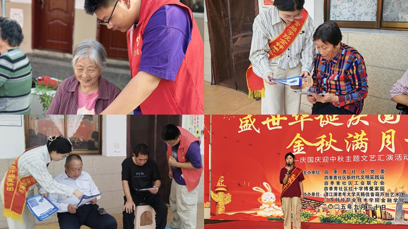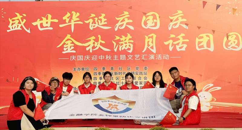 为落实学校“五育并举,融合育人”工作体系建设,弘扬“尊老、敬老、爱老、助老”传统美德并筑牢社区老人群体防诈防线。在中秋国庆双节临近之际,我校金融学院联合四季青社区、清江浦老年大学葫芦丝艺术团,于9月30日以文艺汇演与互动宣讲形式,开展“盛世华诞庆国庆,金秋满月话团圆”敬老防骗活动。